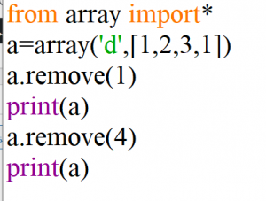 متد remove(): مقداری از آرایه را حذف می کند و اگر ان مقدار وجود نداشته باشد، پیغام خطا ارسال می کند.
